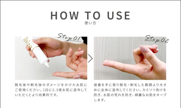 薬用イビサスムースジェルを脱毛後に塗布することにより、脱毛後の肌荒れやカミソリ負けを防ぎ、ムダ毛のないキレイなお肌をキープすることができます。